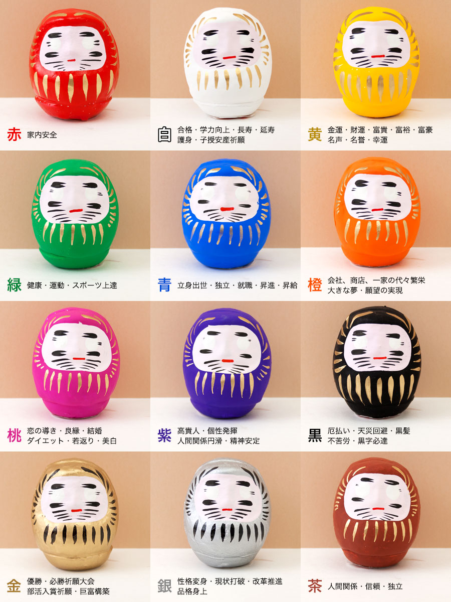 ああああああああああああ!私ってばわかっていなかったぁぁぁぁぁ!いつも赤いだるまを平然と、当然のことのように選んでいた次第ですが、黒とか黄色とか金色のほうがよかったのかー!!!学業的には、白いほうがよかったのかぁぁぁぁぁぁ!