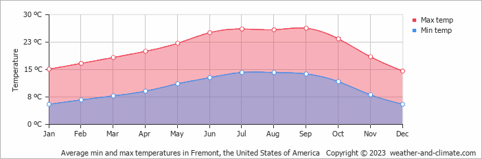 ↑ 私が最後に住んでいたFremont市のもの最低と最高気温