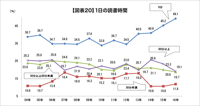 読書は残念ながら日本人の習慣として、映像やインターネットに取って代わられてきつつあります。私は未だに毎日一冊ほどの本を読むんですが、他にもインターネットでニュースを読んだり記事を読んだりします。活字中毒ですね(笑)。どのくらい活字中毒かと言うと、たまに電車に乗ると、一車両全部のつり革広告を読んでしまうくらいです。ついでに日能研などの問題も解いてしまいます(笑)。2ヶ月前に引っ越してたった3駅ですが通勤が始まったので、同じつり革広告を読むのが辛いので(笑)、パズルや漢字練習をしています。歩きながらもやってるので呆れられてるかと思いますし、社会性が低いと思われてるに違いありません(笑)。