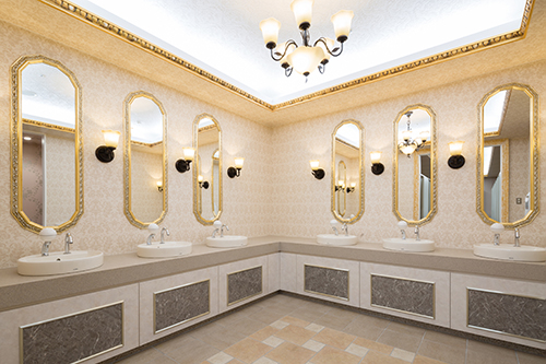 店構えは中世のお城?のよう。化粧室などもヨーロッパ調です。