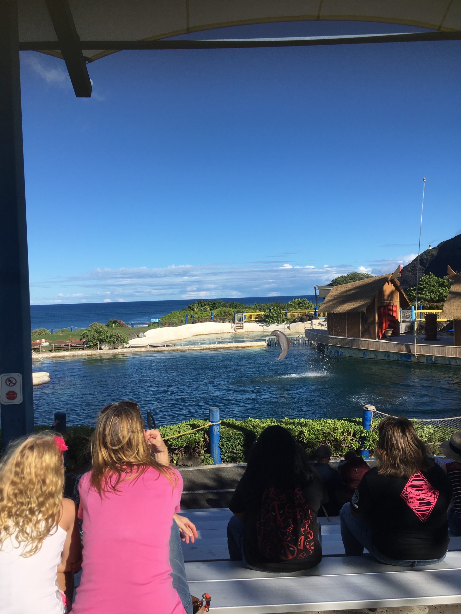 食事のあとは車で子供向けのプログラムですがワイキキから1時間弱のドライブでシーライフパークへ。入場料大人42ドルだったのですが、ちょっと高いかなと感じました。ただ車で行ったのですがこの料金はワイキキのホテルからの送迎もついた料金とのことです。屋外型のちょっと狭めの施設です。サメ、ホヌの水槽や、自由に入って餌やりができるバードケージ、アシカショウ、イルカショウ、ペンギンなどが楽しめますが、園内がすいていたのは金額と内容がちょっと釣り合わないからかなあ、という感じ。帰りは景色をながめながらのんびり戻ります。