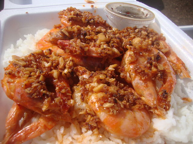 そのあとは人気のハレイワタウンへ。目当てのガーリックシュリンプのお店が今日は平日なのに大行列でした。並ぶのが苦手な自分たちはカフクの店までドライブ。待っていたほうが絶対に早いのではとは思うのですが並ぶのが苦手な性格は仕方がありません。合理的な思考ではないんですけど。