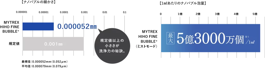 - 至って普通に感じるシャワー:バブル数:最大1億6,000万個※