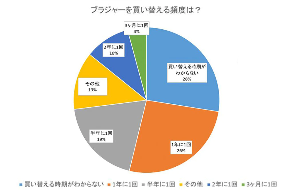 平均的には皆さん どのタイミングで下着を捨てるのかなと思っています。 そして調べてみました。1年から3年が一番多いようです。 私も結果論としては そんな感じになってますかね・・・。