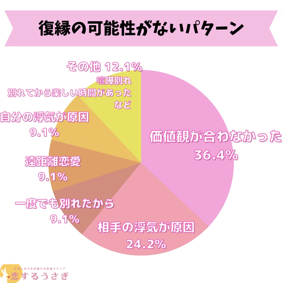 たくさんの理由で復縁・再構築にトライするカップルを見ますが、統計学的には最終的には「回り道」になっているケースがほとんどで、時間がかかってもうまく行くケースは少なそうです。とはいえ、子どもが成人になるまで、とか、自分に経済的な手段が手に入るためとか、女性は時間稼ぎをしたいことが多い様子ですね。
