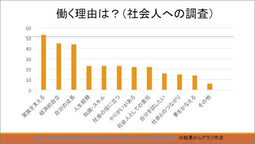 以下がアンケート結果です。ヒトは成長する方向性を自分で決めていいんです。何も仕事で自分を表現せずともいいです。趣味でも、家族とのふれあいでも、なんでもいいと思うんですが、労働時間というのは長いので、「生きがい」「成長」を見出しやすいだけだと思います。たまたま、多くの人が仕事の分野で、単なる糧を得るというだけではなく、経験や成長、社会還元やチャレンジ、夢や目標、などなど、ステップアップ的な動機を持つことで、Social Ladder: 社会的階級の梯子を登って行けているという実感が感じられるので、これを支えにするヒトは多いのかもしれません。