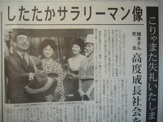 最後に、植木等が延命措置を拒否しており、密葬を願っていたという行に注目。人を楽しませる人の世界観がここにも顕れています。私は人を楽しませることが徹底してできず、どうもまだ悲喜こもごもをごっちゃにしきれていないようです。人間、死ぬまで修行は続きますなぁ・・・。