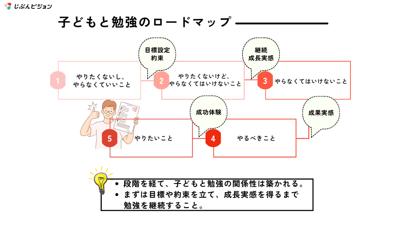 - 小さな成長をほめる: 結果だけでなく「勉強に取り組んだ過程」を認め、自己肯定感を育む。