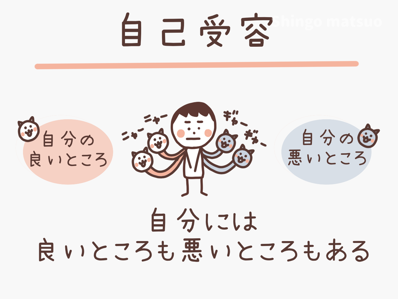 - 「自己肯定」と混同しない: 自己肯定感が高くなくても、ダメな自分を「まあしょうがない」と認めることが自己受容。