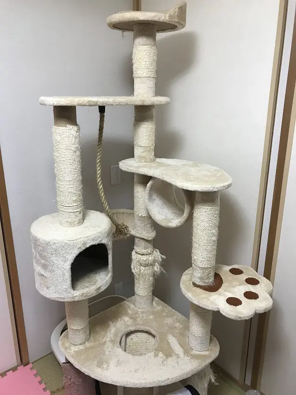 度はキャットタワーを捨てねばならなかったのですが、とりあえず大きいので(180㎝)新しいものを入れるのに置き場所がなく、一旦ベランダに出して、春の訪れと共にエンジョイするベランダ遊び&ベランダひなたぼっこに使ってもらうことに!