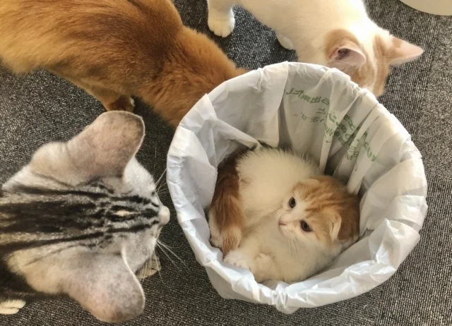 わんちゃんは私が赤ちゃんの頃から4歳くらいまで飼っていたらしいので、私はわんちゃんにも免疫はあるんですが、ネコとは小学校3年からずっといますから、もう50年くらいは少しだけ不在があったとしても、いっしょに暮らしているのです。のべでいくと、もう10数匹のネコと暮らしたのですが、今いるネコたち3匹が、イチバン汚す(笑)。