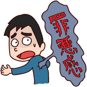 罪悪感:悪いこと、非難されるべきことをおかしたという気持ち。