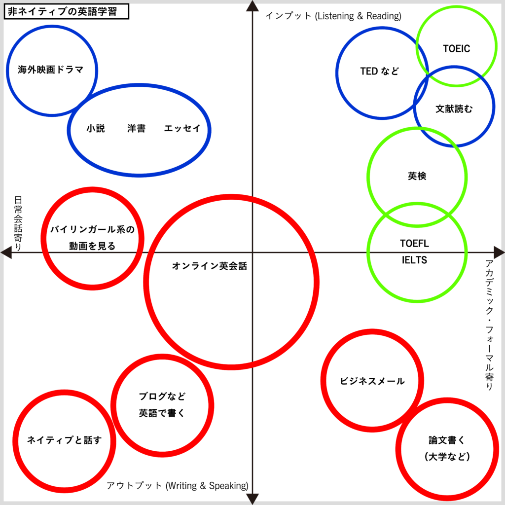 多くの人がこれまで 英語教育では インプットを重視して学んできました。 故に 多くの人々は アウトプットに全く自信がない状態で大人になっています。 とはいえ 問題はないのです。 なぜならば、 日本の英語教育では 文法 ですら、 学習方法で すら、 正しい方法にはなっていないので、 まずは 学習方法やそれぞれの意義や 意味をはっきりさせることの方が、 この命題よりは大切だからです。