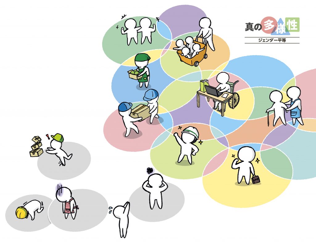 多様性: 人種や性別、宗教、価値観、障がいの有無、性的指向など、さまざまな属性を持つ人々が共存している状態を指します。また、個人の違いを認め合い、尊重し合うことも意味する。