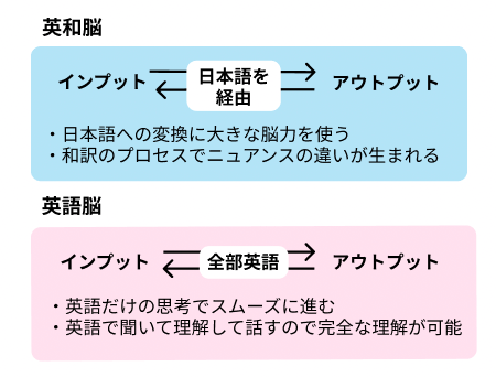 日本語を英語に、英語を日本語に訳すことは、諸悪の根源の第1に悪いことです。なぜなのか? 言葉に直すしかないじゃないか、と 強く頑固に考える人もいるかもしれませんが そうでもないんですよ。 なぜならば 私たちの脳は想像ができるし 推測ができるんです。 そしてあった出来事や 想像した出来事を頭の中で映像に直すことができます。 必ずしも 言語が必要なわけではなく、 これを味や音楽に変格させることが できる人もいるし、 実際に絵を描いたりすることができる人もたくさんいます。