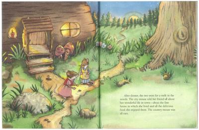 若い田舎のねずみは、毎日ののんびりした暮らしに飽きて、もっと他に何か探したいなと好奇心と希望を以って都会に出てくるが、人混みや食料の貧しさや家の狭さや人やねずみの冷たさに遭遇して、最初はあんなになかよしだった都会のねずみとも心が合わさらなくなって落胆して、田舎に帰る。そのときに、「ねずみにもそれぞれ分相応の暮らしというものがある」とか「都会の冷たい暮らしよりも自適悠々な自分に似合った暮らしがよい」など、ストーリーを読んだそれぞれに、感想が浮かび上がる。