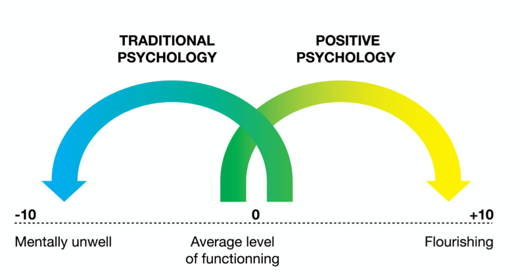 Positive psychology:私たち一人ひとりの人生や、私たちの属する組織や社会のあり方が、本来あるべき正しい方向に向かう状態に注目し、そのような状態を構成する諸要素について科学的に検証・実証を試みる心理学の一領域