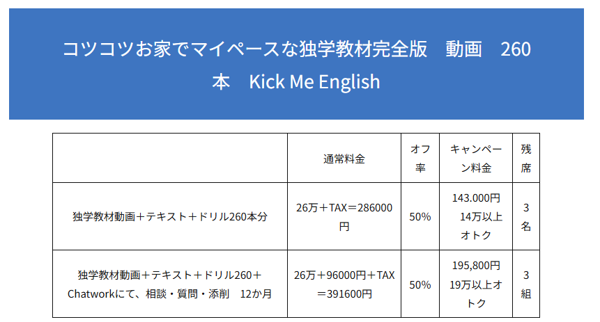 ただし、12月24日までクリスマスプレゼント価格を設定しております>独学教材のみ。こちらをごらんください。←クリック