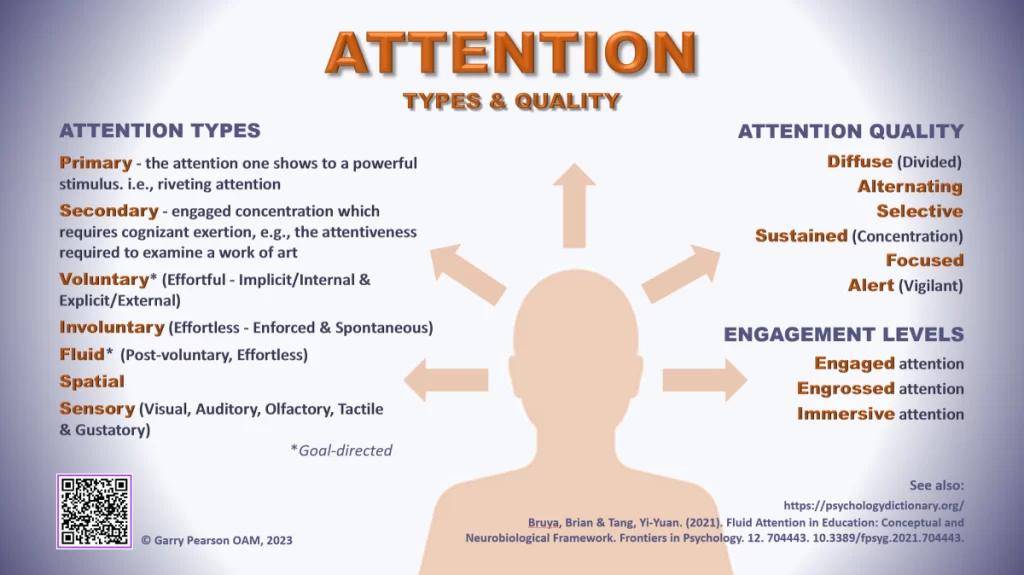 持続的注意とは、特定の時間、または関連する会話、タスク、または活動が完了するまで、人、タスク、または活動に集中することを意味します。 たとえば、私たちは学校で他の学習者や教師と関わりながら、この種の注意力を磨く方法を学びます。 もう 1 つの例は、テストや試験を勉強したり書いたりすることを通じて学習する場合です。もう 1 つの関連するタイプは集中注意として知られており、これには大きな騒音などの外部刺激に迅速に反応できることが含まれます。 ご想像のとおり、これは生き残って環境の変化に対応できるようにするための重要な部分を形成します。
