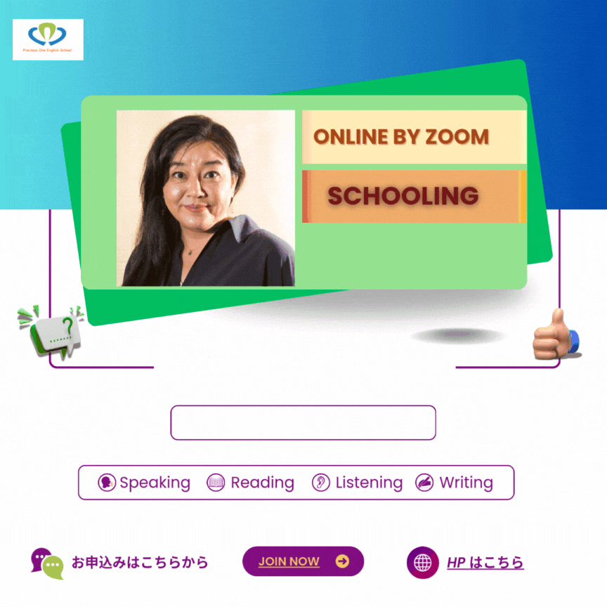 開始どきの実力にもよりますが、目安は中高で英語を学んだことをそれなりに記憶にある方であれば、半年以内でご自分の日本語の50%ほどは話せるようになります。Precious One English Schoolでは、英語だけに時間を投入できない方、コミットできない方は1年半から2年でこの内容を継続していただいております。長くやった方は、ご自分の日本語の50%以上になる方が多いです。