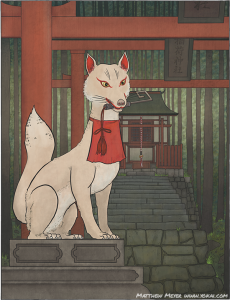 Foxes are a common subject of Japanese folklore, and they can either be good or bad. Good, guardian foxes are usually portrayed as white or light-colored. Bad foxes are portrayed as black or some other dark color, and they are mischievous.
