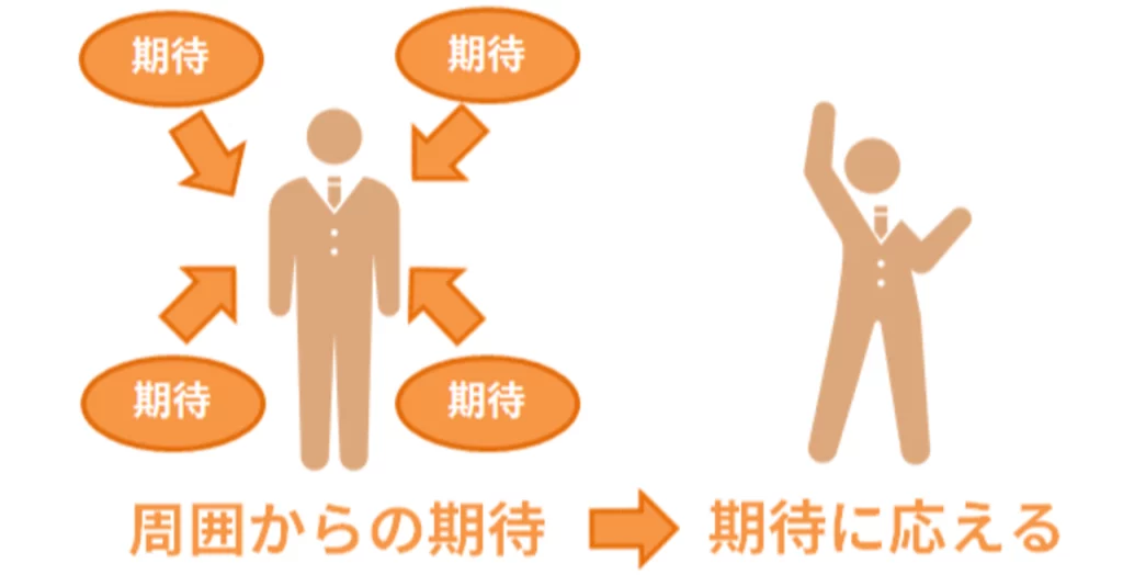 ピグマリオン効果:他者からの期待を受けることで学習成績が向上したり、仕事での成果が上がったりする心理効果。