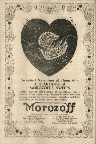 It was finally in the 1980s that the idea of using chocolate to express gratitude was introduced, and as we can see from the present day situation, that idea was The company Morozoff’s first advertisement for selling chocolate in Japan, 1932